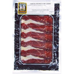 Caja con blísteres de 150 gramos cada uno, loncheado a máquina, listo para abrir y degustar con familia, amigos y comensales más apreciados.